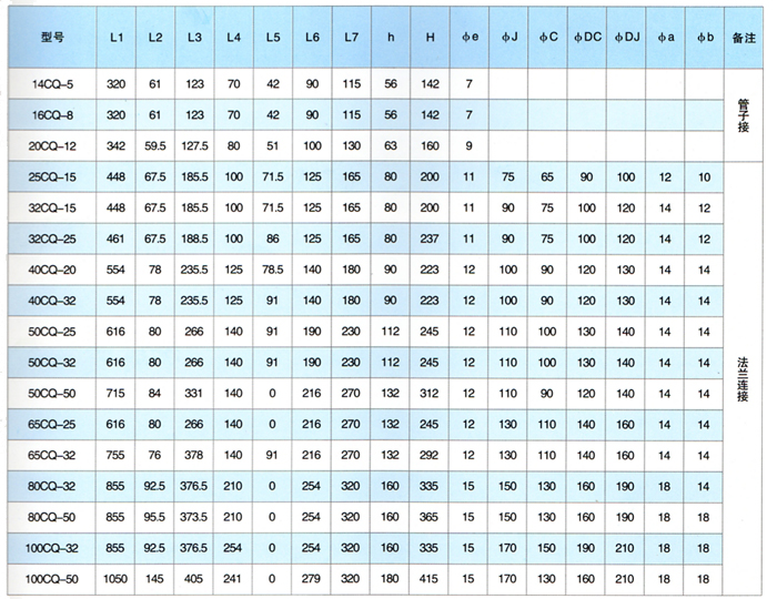 注:表中16CQ-8---100CQ-50都可配防爆電機(jī)