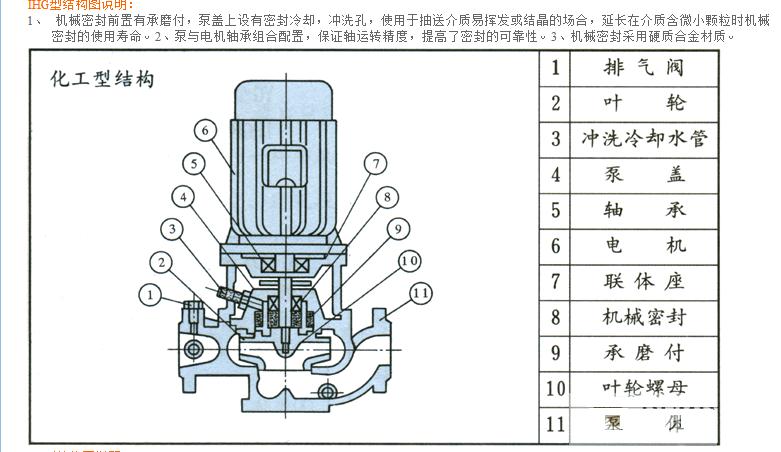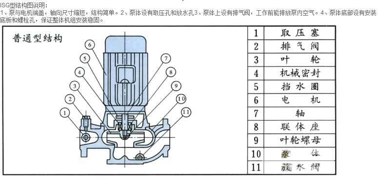 ISG系列單級(jí)單吸立式管道離心泵,是本單位科技人員聯(lián)合國(guó)內(nèi)水泵專家選用優(yōu)秀水力模型,采用IS型離心泵之性能參數(shù),在一般立式泵的基礎(chǔ)上進(jìn)行巧妙組合設(shè)計(jì)而成。同時(shí)根據(jù)使用溫度、介質(zhì)等不同在ISG型基礎(chǔ)上派出適用熱水、高溫、腐蝕性化工泵、油泵。該系列產(chǎn)品具有高效節(jié)能、噪音低、性能可靠等優(yōu)點(diǎn)