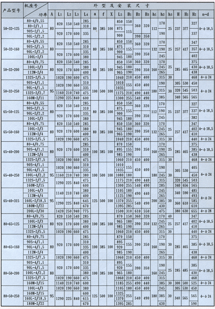 泵轉速分為2900和1450轉/分兩種。