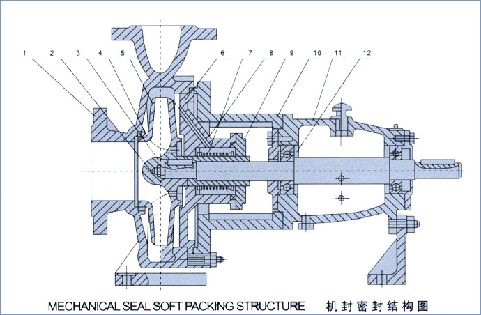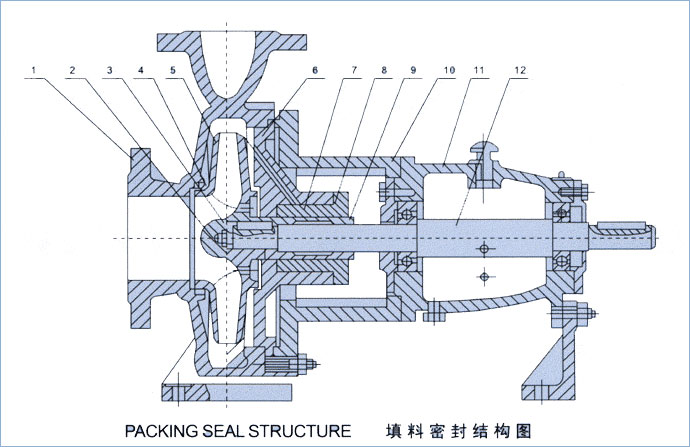 2、軸封:軸封為填料或機(jī)械密封,兩種密封泵蓋可通用;