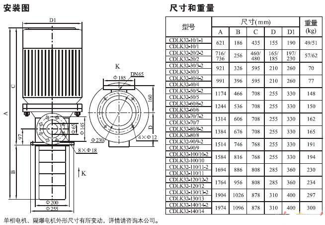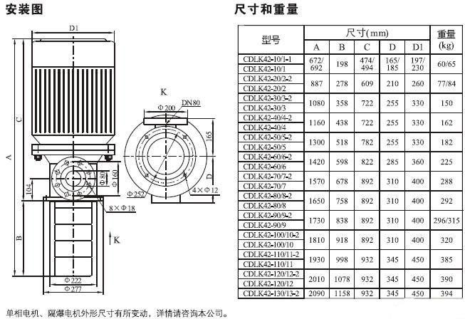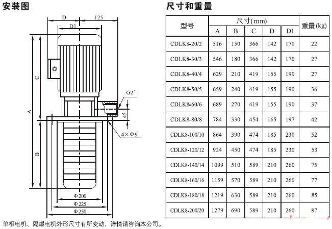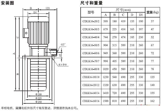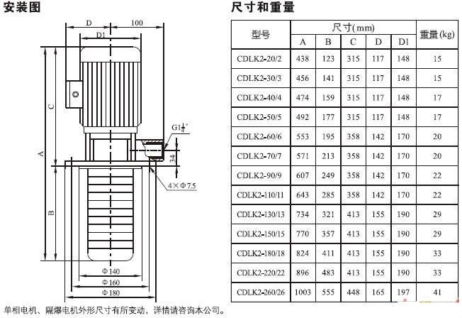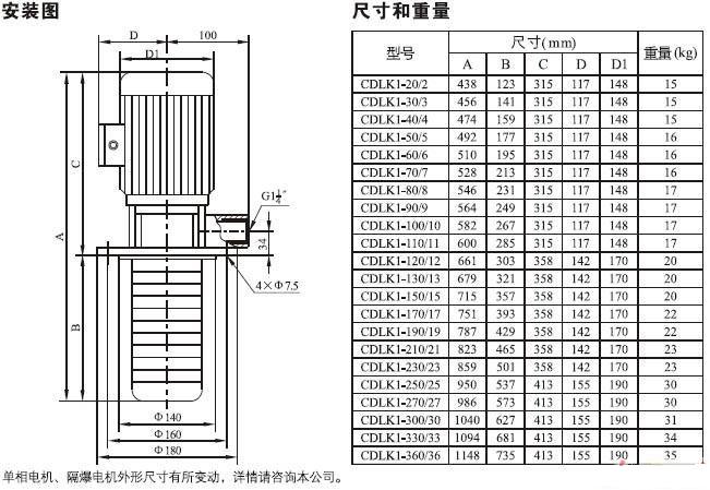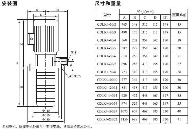CDLK/CDLKF 為安裝標(biāo)準(zhǔn)電機(jī)的非自吸式多級離心泵,電機(jī)軸通過泵頭用聯(lián)軸器直接與泵軸聯(lián)接,泵可根據(jù)需要配置智能保護(hù)器,對泵干轉(zhuǎn)、缺相、過載等進(jìn)行有效保護(hù)。為滿足水槽或容器的安裝深度,可安裝空腔體來改變泵本身的長度,不同的級數(shù)長度見尺寸和重量表和可供產(chǎn)品范圍表。 電機(jī)為全封閉,風(fēng)冷式二級標(biāo)準(zhǔn)電機(jī)