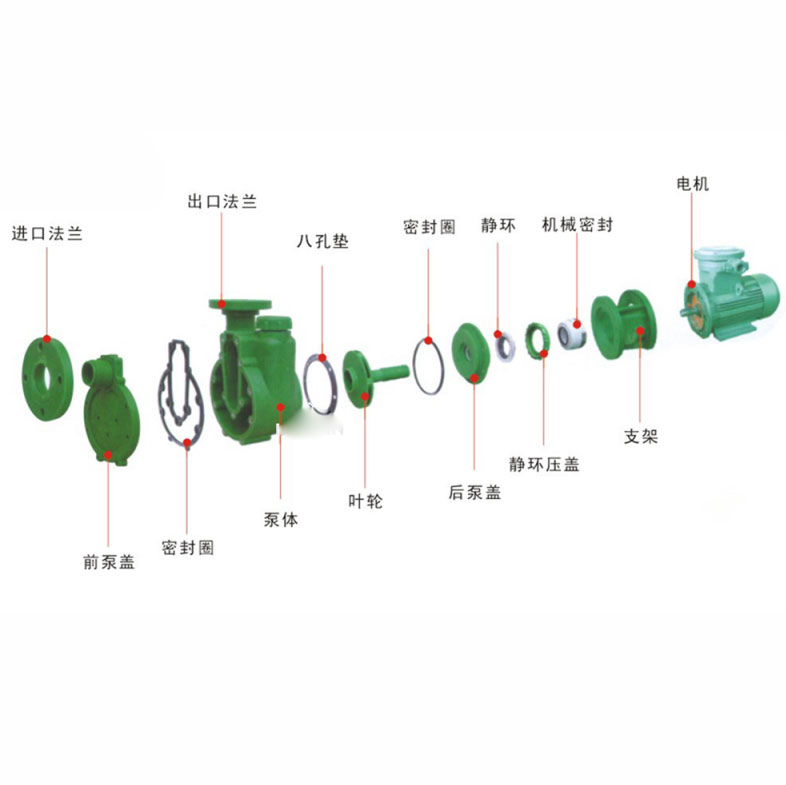 采用增強聚丙烯(CFR-PP)一次注塑成型。自吸泵機械強度高,耐腐蝕性能強。