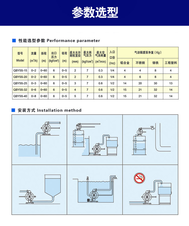 正奧公司目前已形成系列化生產(chǎn),共有八種規(guī)格直徑:φ25mm(1')、φ40mm(11/2')、φ50mm(2')、φ65mm(21/2')、φ80mm(3')、φ100mm(4')。隔膜泵根據(jù)不同液體介質(zhì)分別采用丁晴橡膠、氯丁橡膠、氟橡膠、聚四氟乙烯隔膜。以滿足不同用戶的需要。