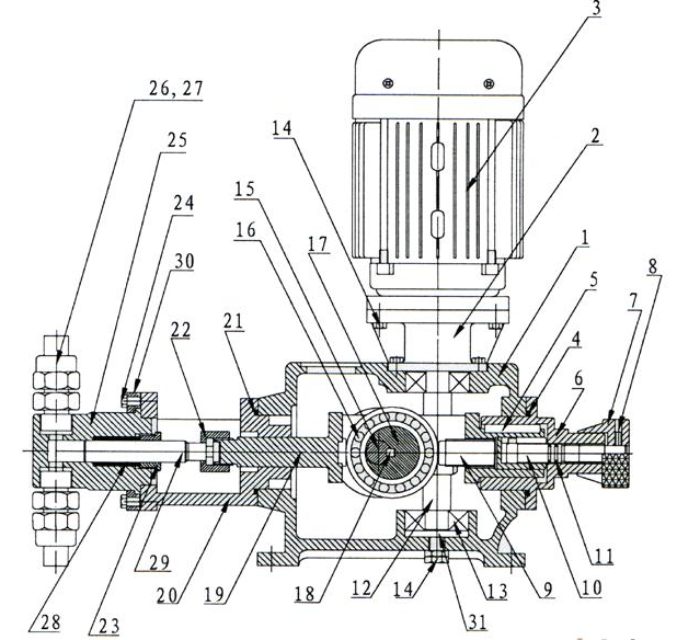J-X系列柱塞式計(jì)量泵結(jié)構(gòu)原理: